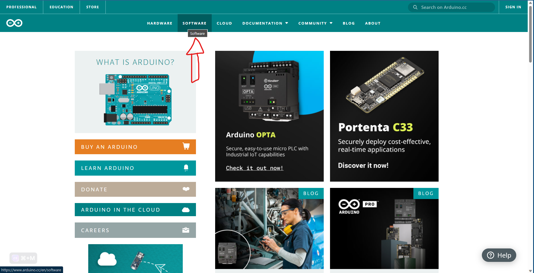Abre tu navegador web y dirígete a la página oficial de Arduino en arduino.cc.